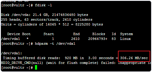 2、因为Vultr日本VPS用的是SSD硬盘,针对SSD硬盘的读写速度测试结果是300MB/s左右。