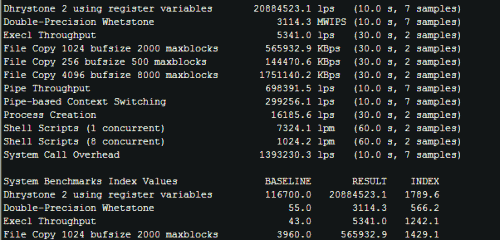 3、这是用UnixBench测试Vultr日本VPS性能综合跑分结果,内存为1GB的VPS测试超过了1000分。(点击放大)