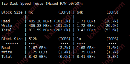 我们再测试一下IO,果然,等了几分钟重新测试,这个非常爽的感觉就回来了。读写达到了3.41GB/S
