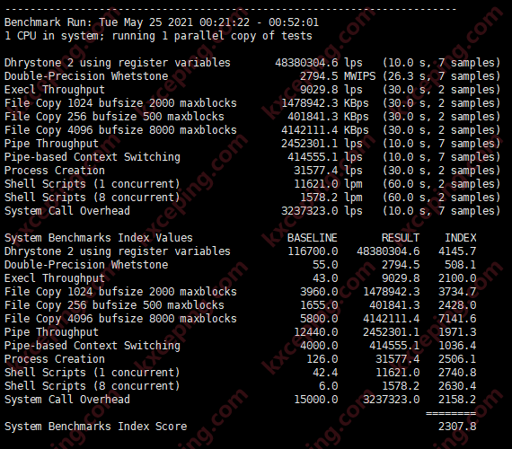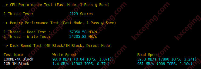 这个配置果然是不一般,CPU达到了2123,一般英特尔的都是在500-800左右,内存的读写也给力,IO的水平测试下来应该算是一般,站长判断应该是这个时间段测试的人太多了。