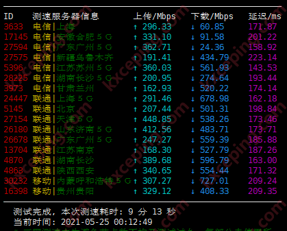 其实大家还是比较关心风速的,不过目前是白天,晚高峰时段站长还会再测试一下,下面分了两个脚本进行测试,这个速度还是可以的,起码可以看4K了。